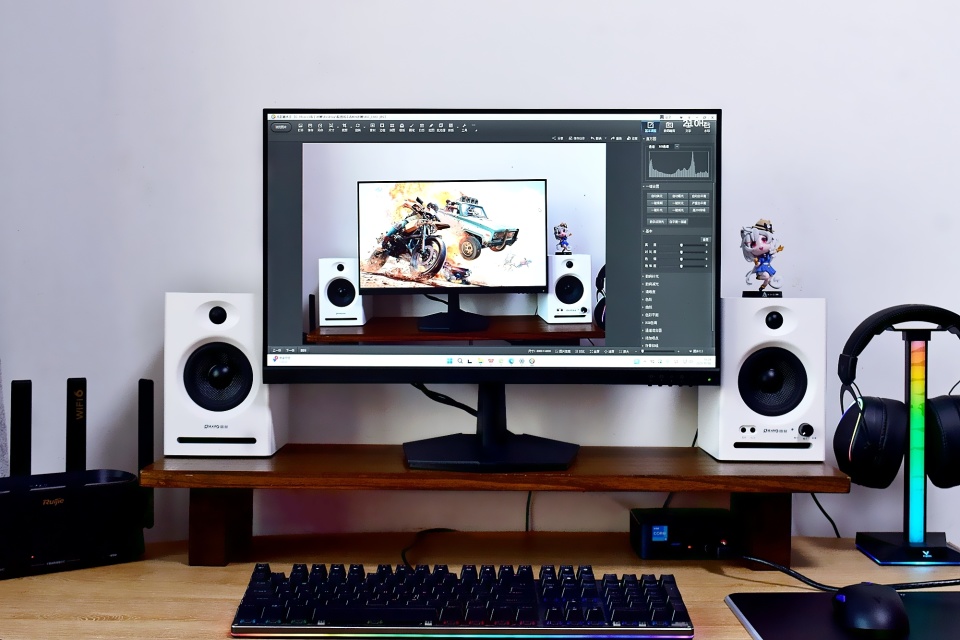 除了游戏和娱乐外,联想来酷N24还支持99% sRGB专业色域,能够让显色更精准,还原真实色彩,像图像处理、专业制图等工作也能满足。比如像我有时会剪辑视频或处理图片,通过实际体验,显示器能够有效还原图片真实色彩,更方便用户根据需要快速准确处理。