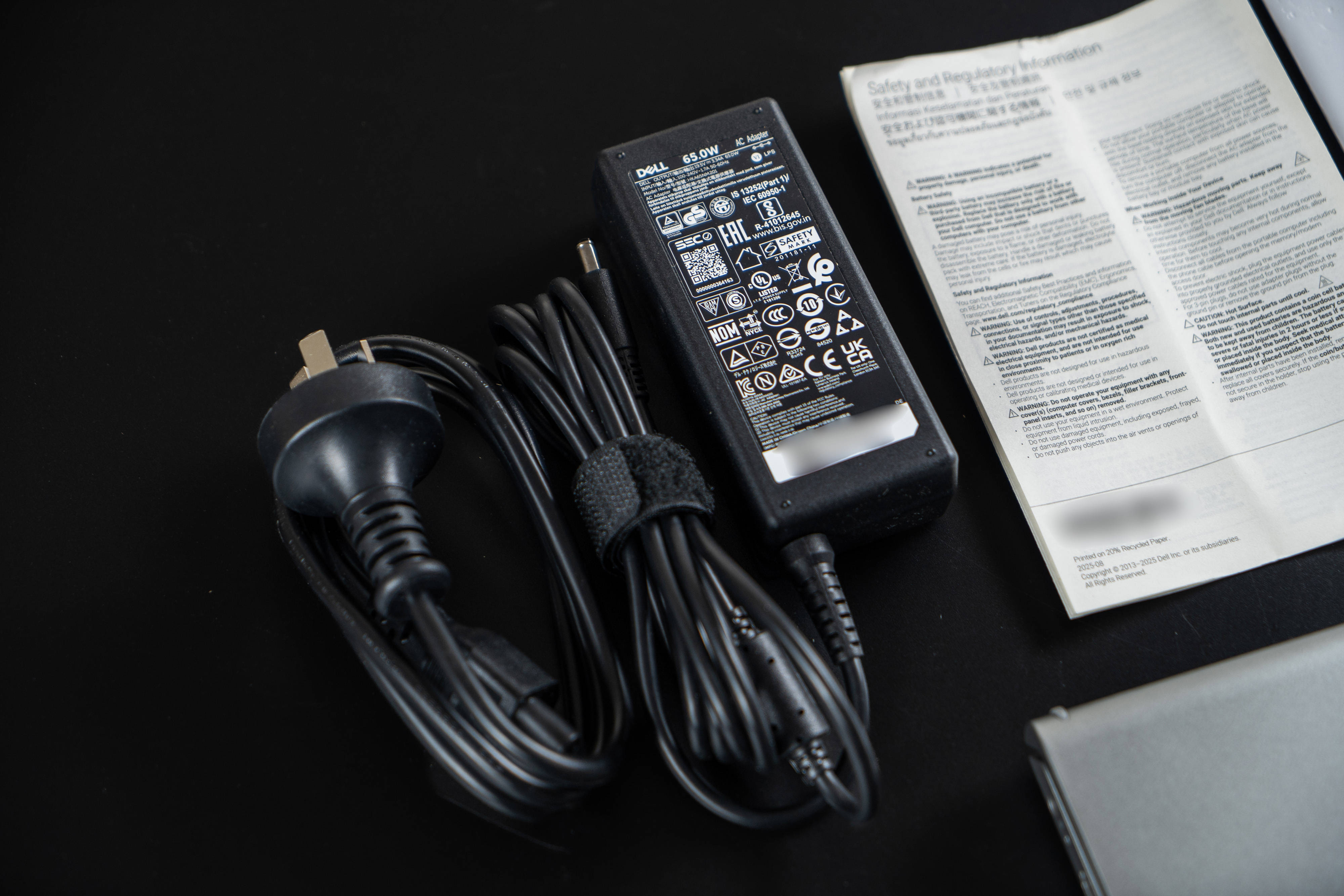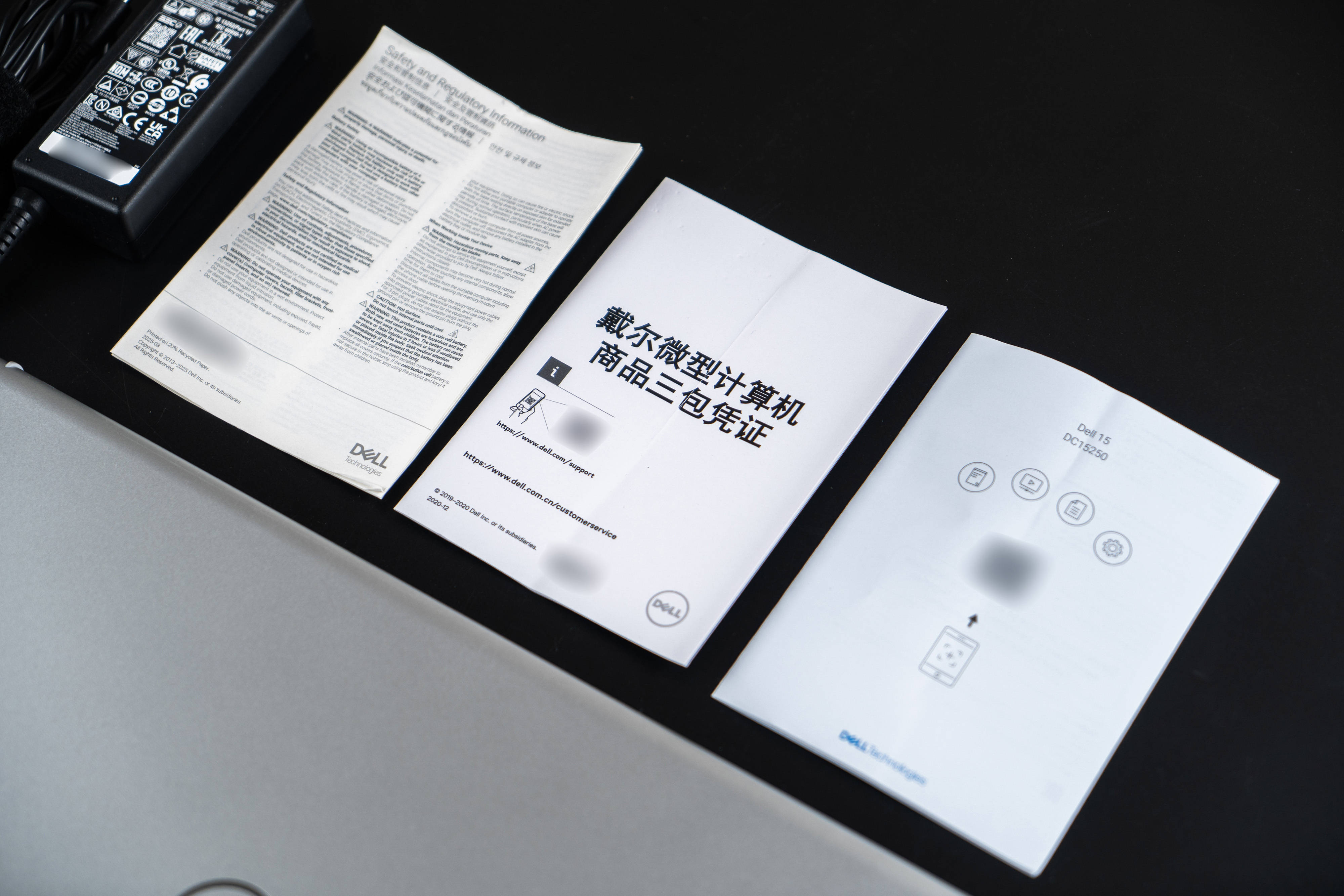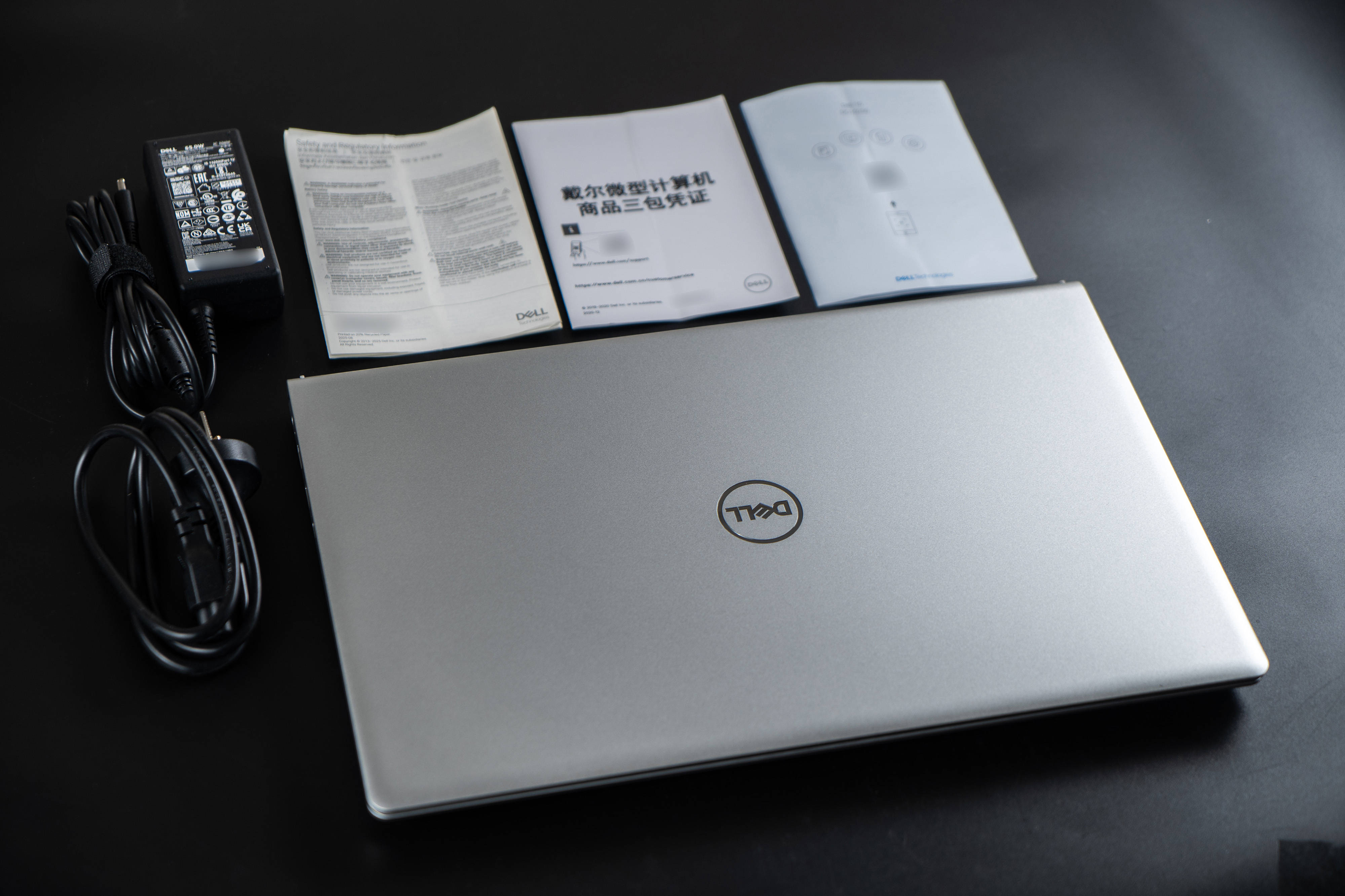 ▼取出所有东西,除了电脑本体之外,有一本使用说明书、三包凭证、快速指南,还有一个电源适配器