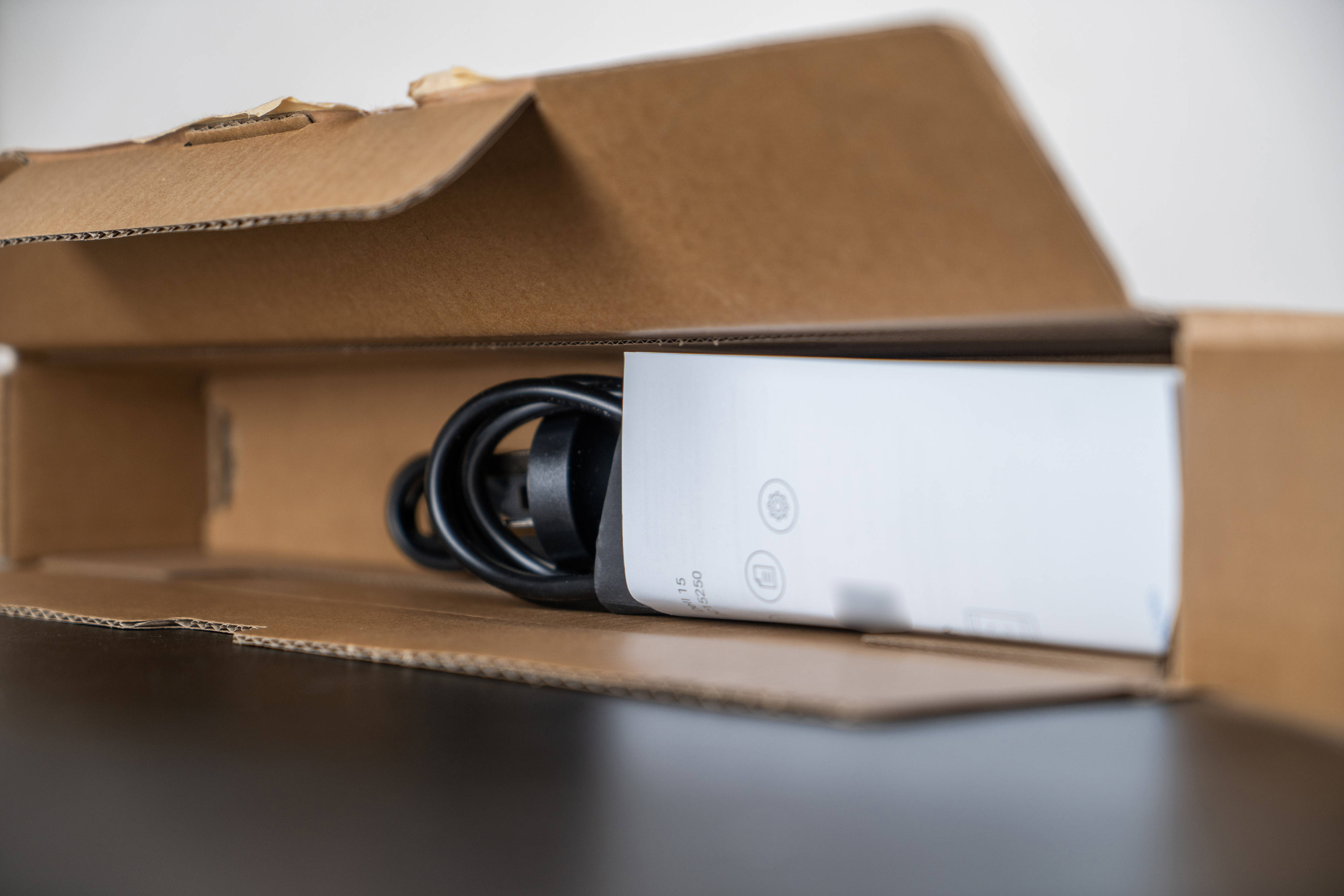 ▼打开纸箱,电源适配器和说明书放在了最上面