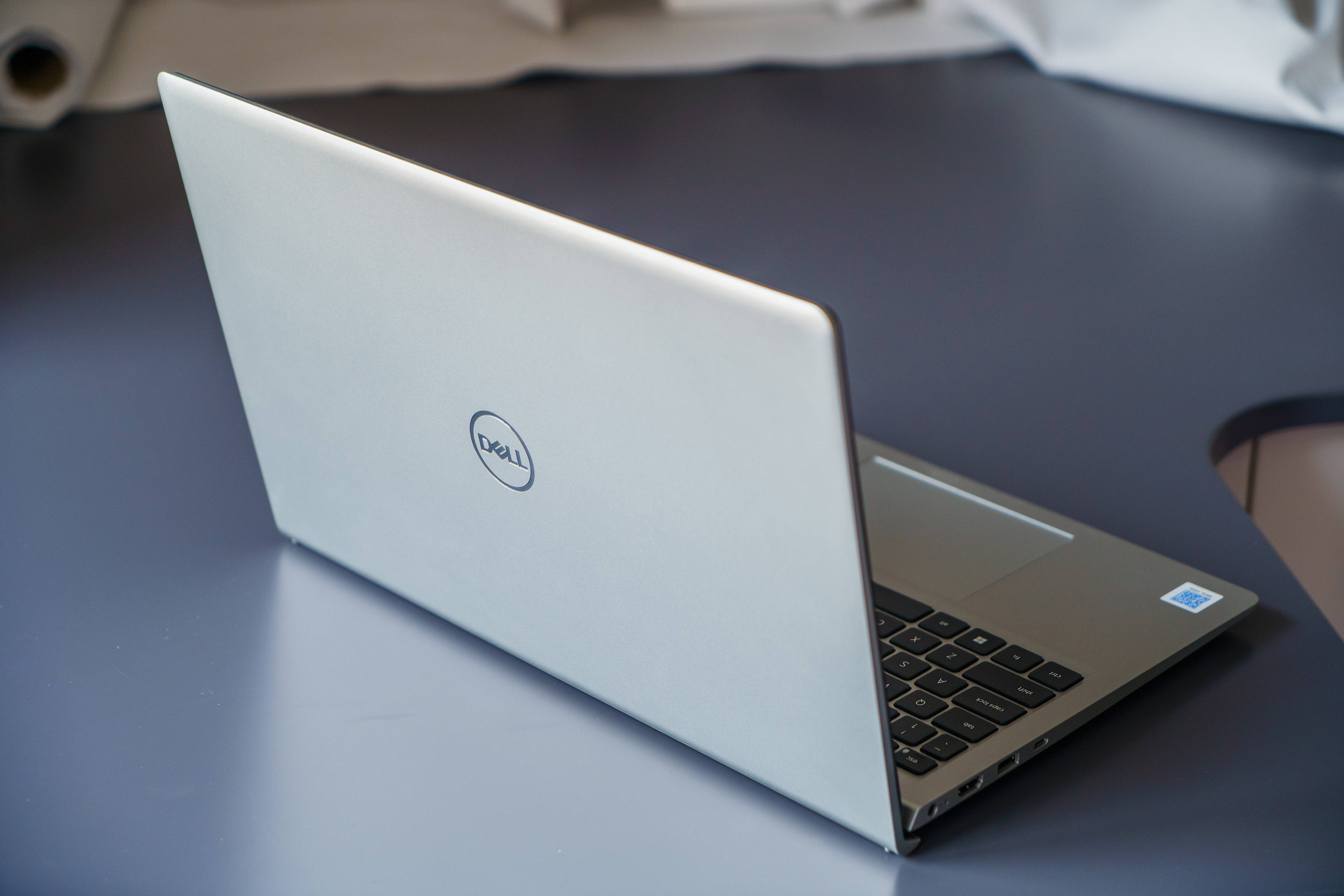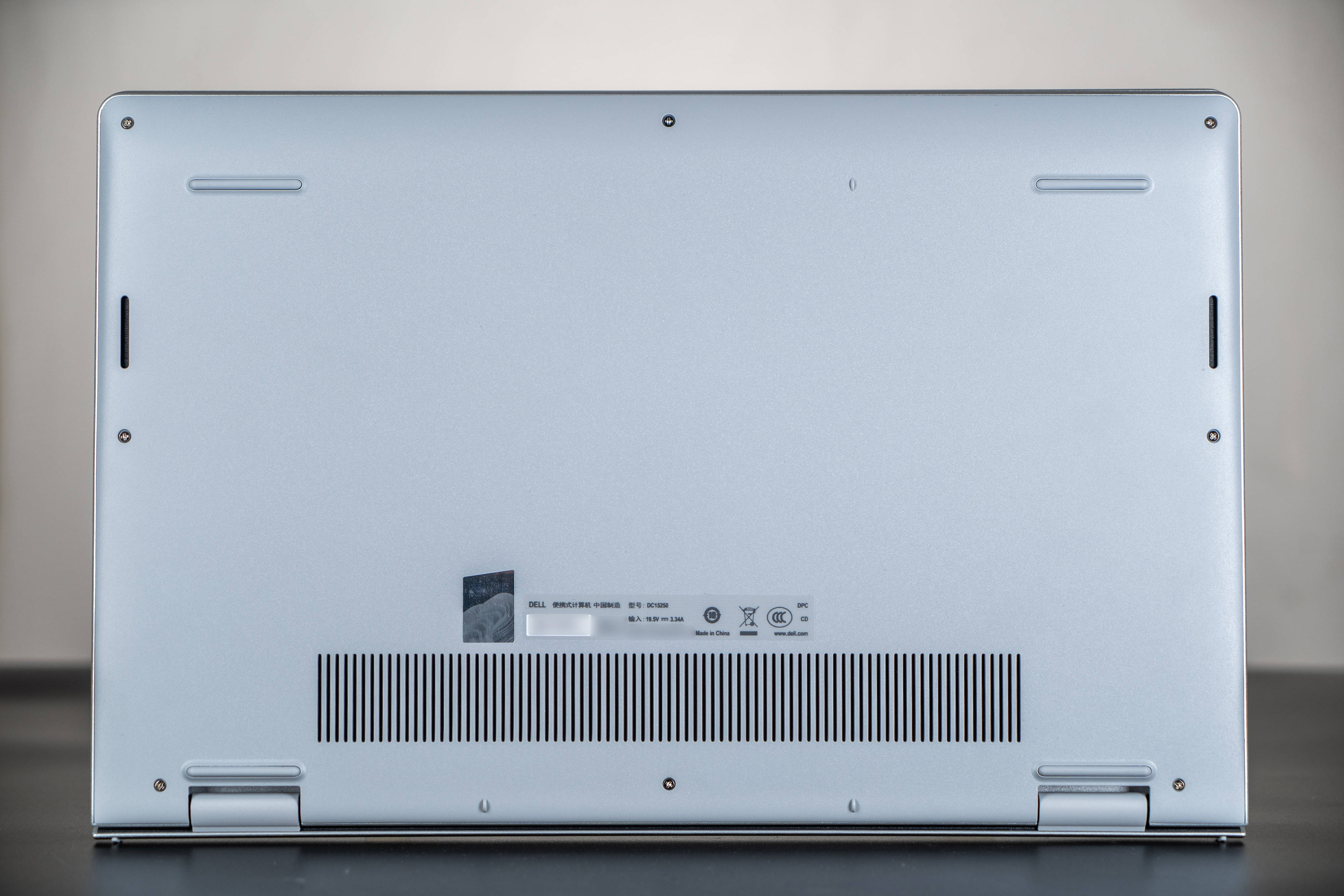 ▼A面只有中间有一个嵌入的“DELL” 金属LOGO,表面为磨砂铝合金质感的设计,手感蛮不错,也不容易留下指纹
