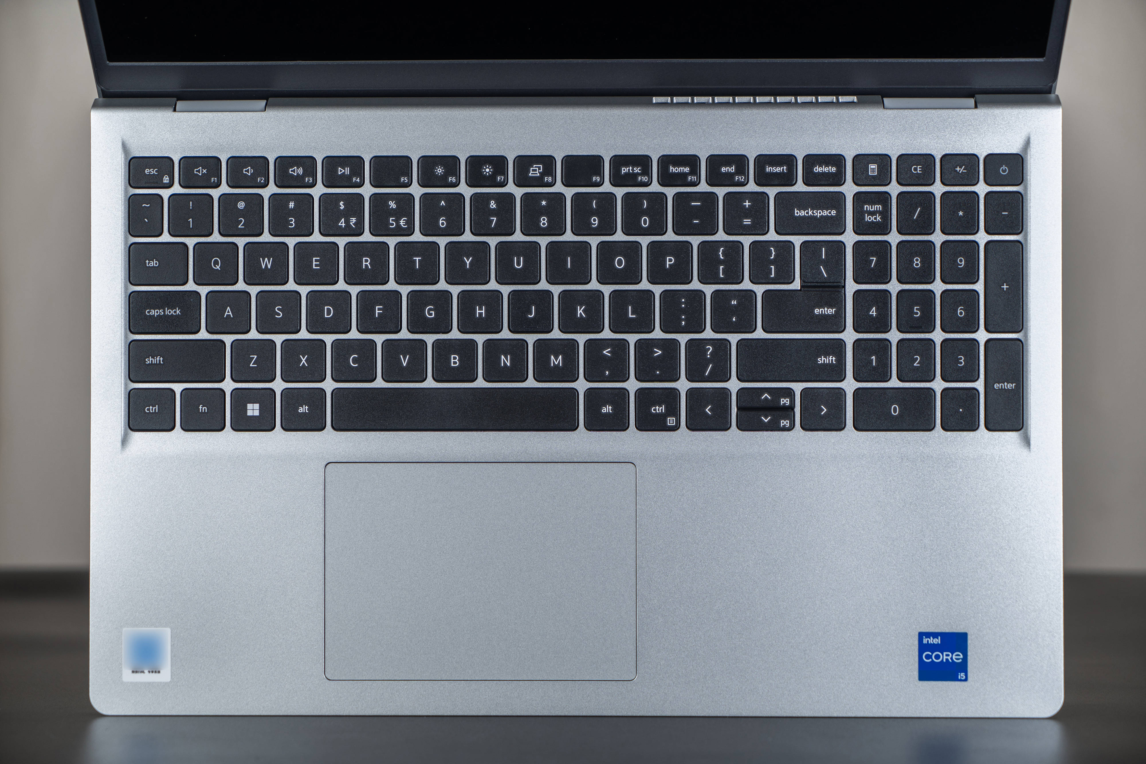 ▼C面是键盘和触控板区域,可以看到右侧还有小数字键和计算器应用快捷键,商务办公人士必备,这也是我最喜欢的元素之一,一般我买笔记本或者独立键盘都会选带小数字键的,因为更加实用