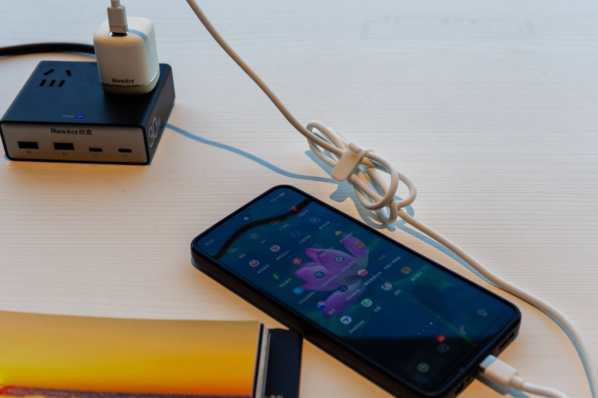 航嘉灵动F45 Turbo氮化镓充电器,配有加粗线芯的液态硅胶线,辅以硅胶+铝壳精工打造,柔韧有些,软软糯糯,并且快充线有快速粘布可以方便收纳,让喜欢整洁的你,随时可以拥有一个整洁的桌面。