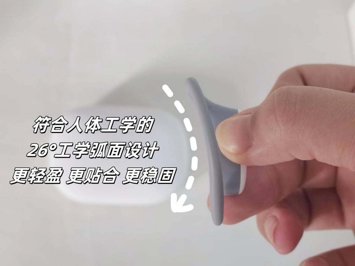 虹觅Olite耳机配备了14.2mm石墨烯科技振膜,音量雄浑,即便处于嘈杂环境,也能清楚听清耳机的声音。同时,它所采用的HD音束定向传声技术,能很好的减少声音外漏,在实际使用中,耳机的音质表现极为出色。在佩戴设计上,从侧面看,耳机呈现出显著的弧面。这是虹觅基于采集超过1000份亚洲人耳数据而设计的26°人体工学弧面,确保佩戴时能更好地贴合耳部,极大提升了舒适性与稳固性。此外,单耳仅6.8g的轻盈重量,长时间佩戴几乎毫无负担。