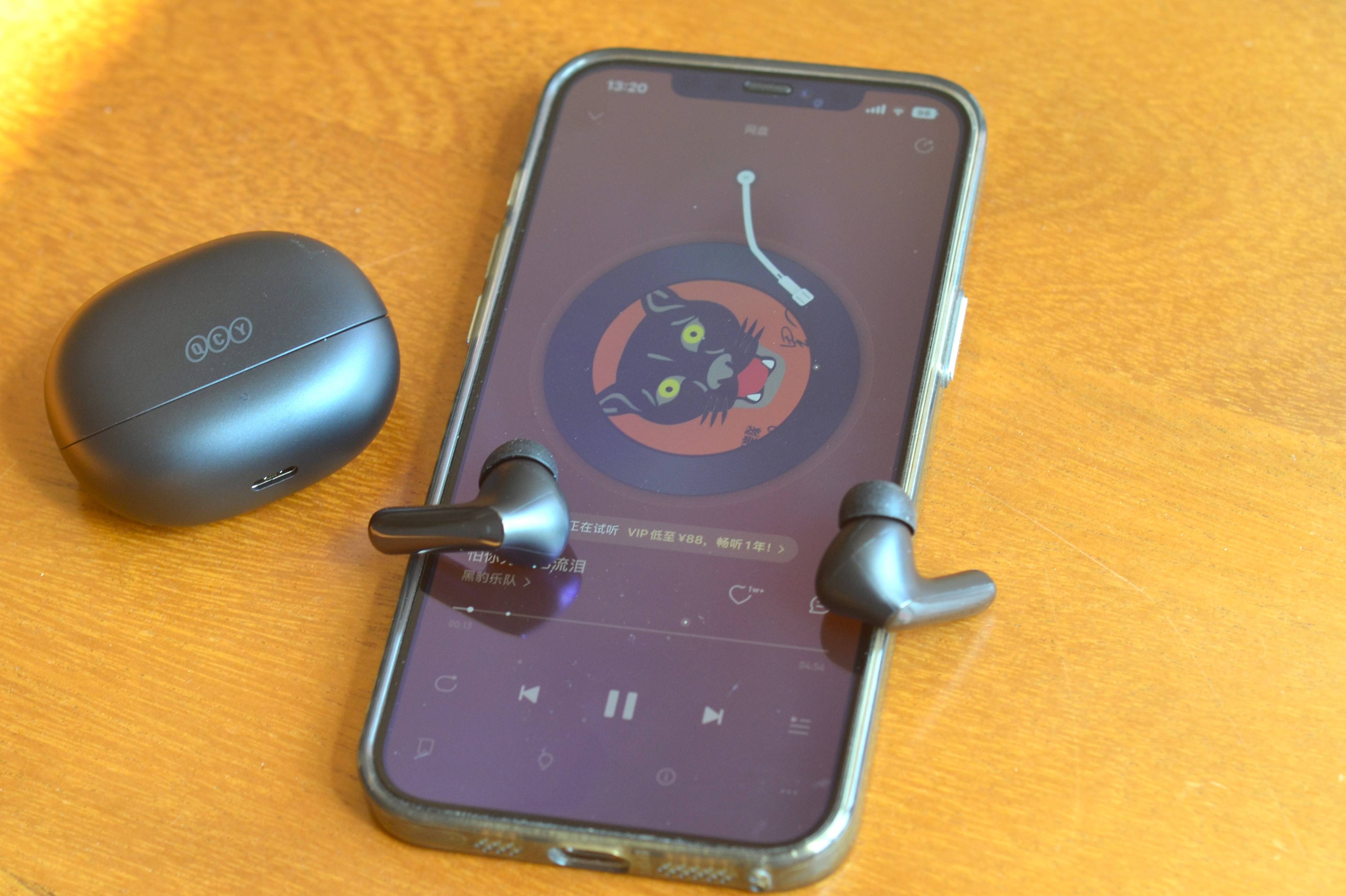 得益于QCY N20的13mm超大动圈和蓝牙6.0芯片,听歌的整体感觉饱满厚实,特别是低频区域的澎湃深沉,动态大的歌曲听着就带质感和弹性,中音部分透亮清晰,高音区域抑扬不刺耳,非常舒适的聆听感,也因此获得网易云音乐金标认证。