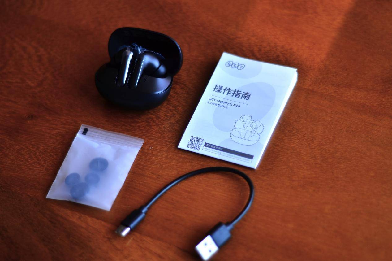 QCY N20产品包括耳机、充电仓、操作指南、TYPE-C充电线和附送的两对耳塞帽,因为QCY N20为入耳式耳机,连同耳机上共三对耳塞帽可以适应耳道尺寸大小不同的用户,选择适合的耳塞帽可以更贴合耳道不易脱落,长时间佩戴更舒适。