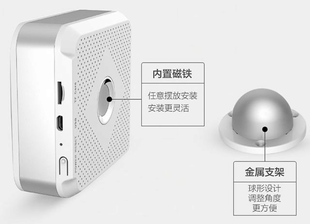 对于安装方式,这款产品也很人性化,因为采用的是无线WiFi连接,所以不需要布线,不受空间的限制和束缚,你可以安装在任意的位置。同时,内置的磁铁模式,可以任意摆放安装,不受安装的局限。