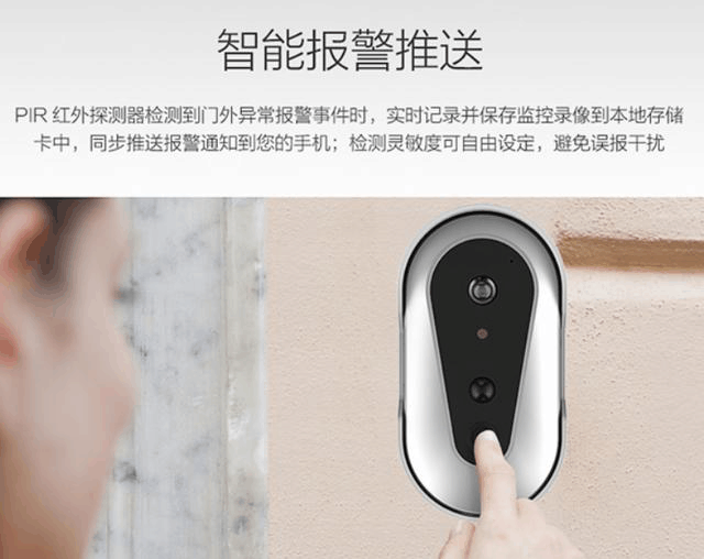 另外,产品的PIR红外探测器可以监测到门外的异常情况,并且及时的传输给你。再加上监控录像的功能,记录门外发生的事情,检测的灵敏度也能够根据自己的需求进行设定,避免对自己造成干扰。
